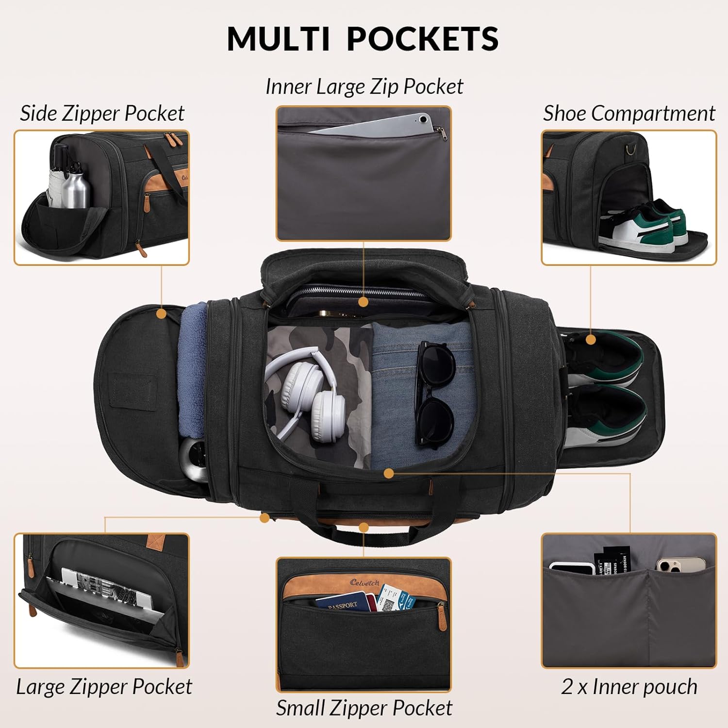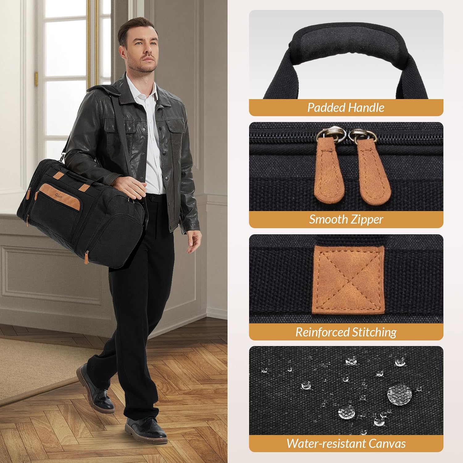 Constructed from high-quality canvas material, this bag is not only stylish but also built to last. The sturdy design and reinforced stitching make it a reliable choice for frequent travelers. The adjustable shoulder strap and padded handles offer comfortable carrying options, whether you’re navigating through airports or city streets.